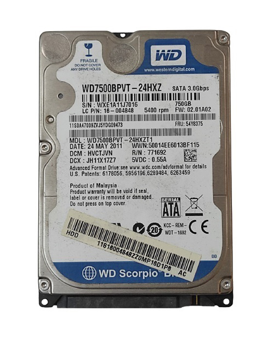 WD7500BPVT-16HXZT3 Western Digital Laptop Hard Drive